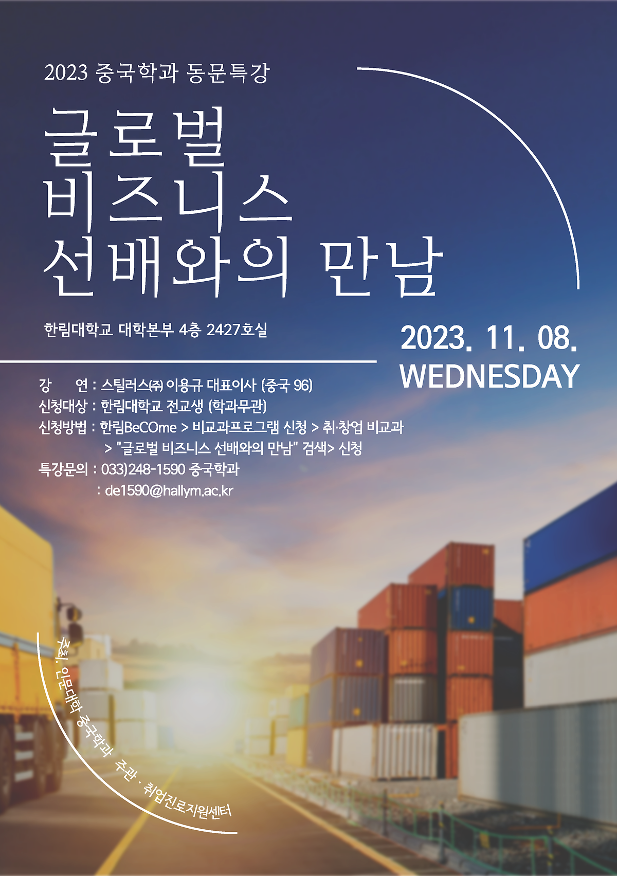 2023학년도 동문특강 "글로벌 비즈니스 선배와의 만남"-스틸러스㈜ 대표이사 이용규, 중국 96)