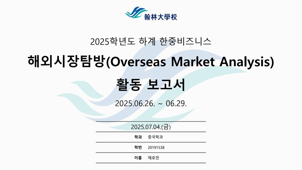 2025 한중비즈니스전공 다롄 및 하얼빈 해외시장분석 (채호민)