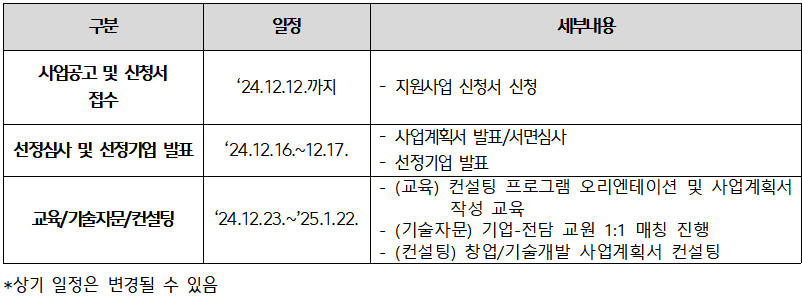 ○ 사업기간: 2024. 11. ~ 2025. 1.
