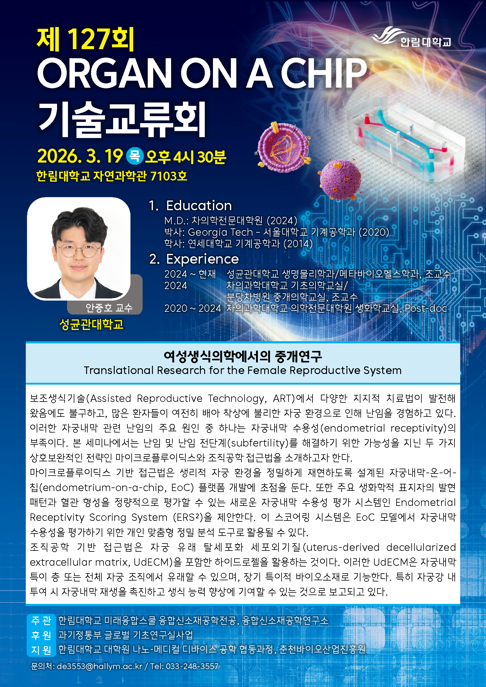 장소: 한림대학교 자연과학관 7103호