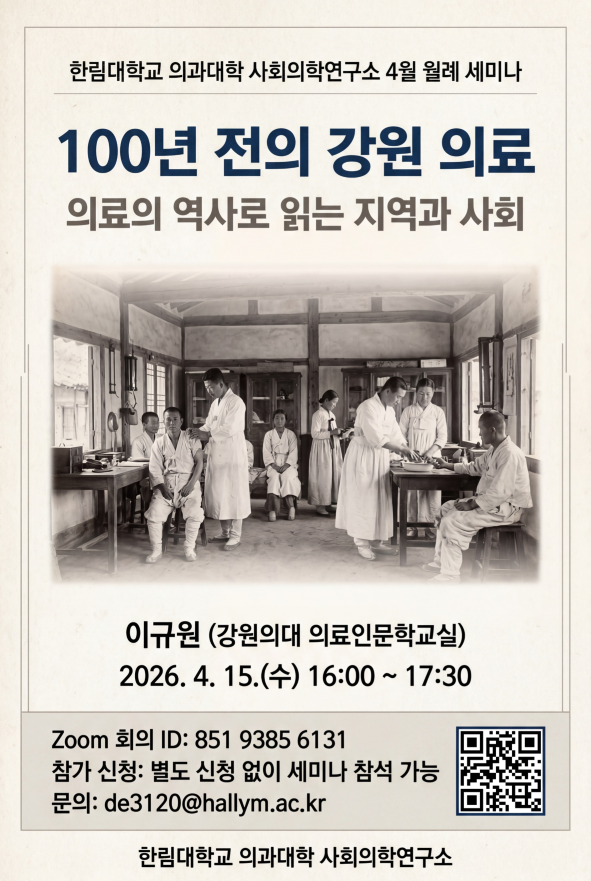2026년도 4월 월례 세미나 <100년 전의 강원 의료> 안내