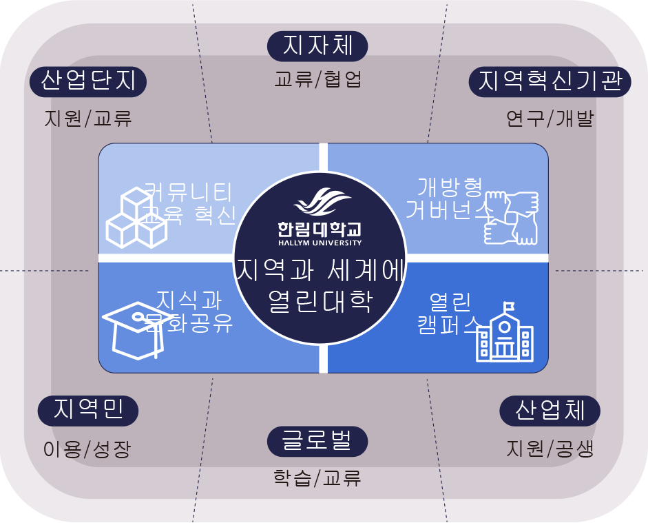 - 지역사회·산업체와 협력하는 두뇌 집단형 글로컬대학
